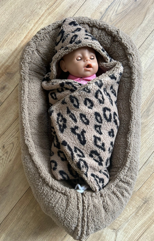 Poppen omslag doek taupe panter