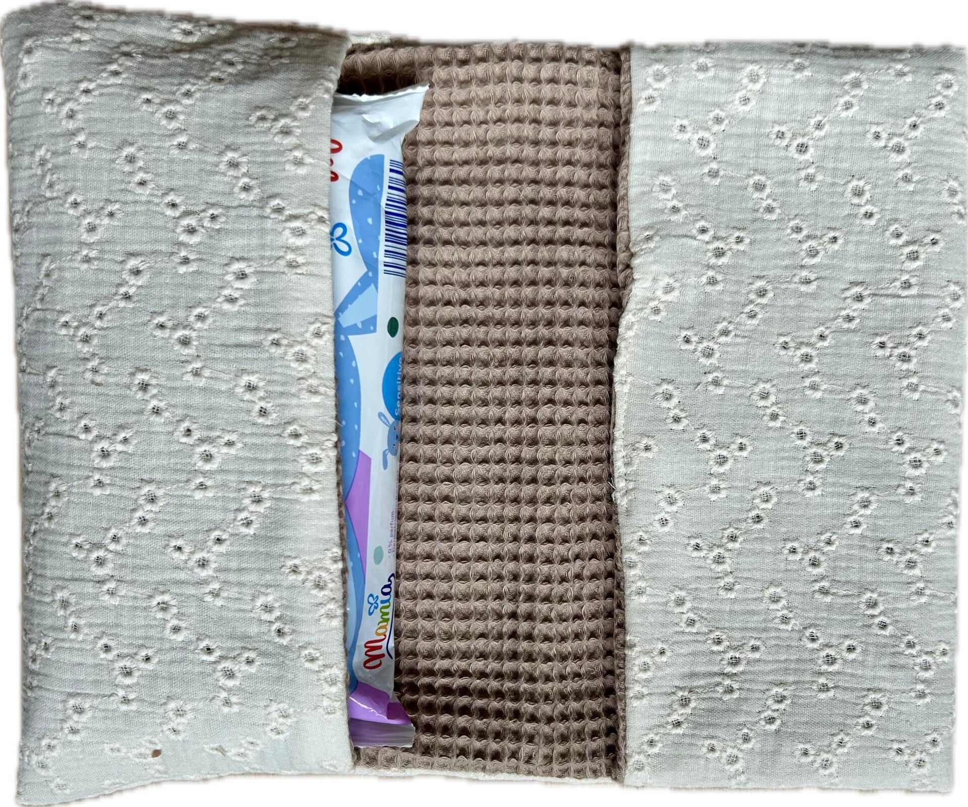 Luieretui broderie wit / wafel taupe